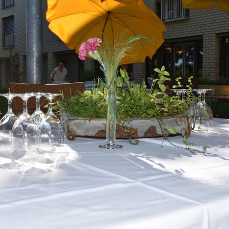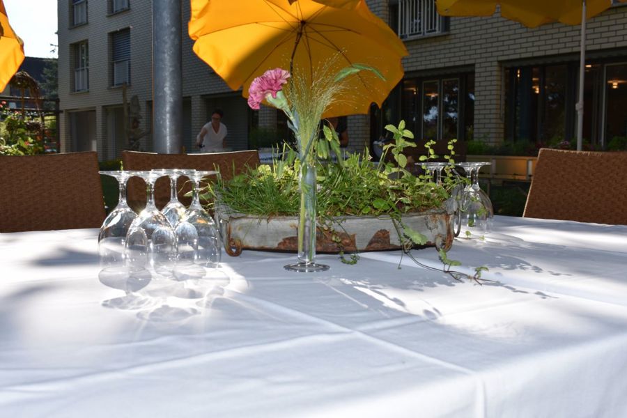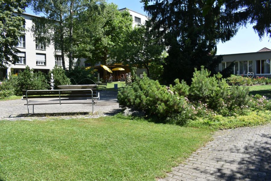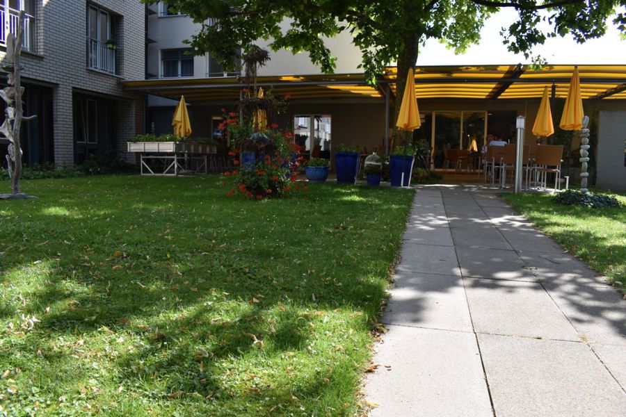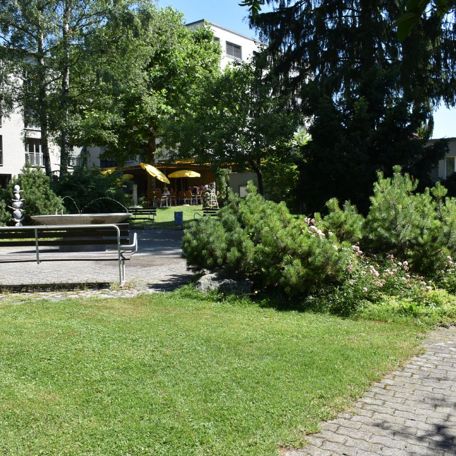 Die grosse Terrasse sowie der Ey-Park sind die Anziehungspunkte des Hauses. Hier lässt es sich bei einer Tasse Kaffee oder einem Gläschen Wein verweilen oder man lässt sich zu einem Spaziergang in der Parkanlage hinreissen. Der angrenzende Kindergarten sorgt dafür, dass die grosszügige Grünfläche mit den schattigen Plätzen immer wieder mit zusätzlichem Leben erfüllt wird.