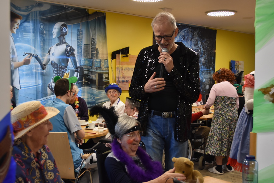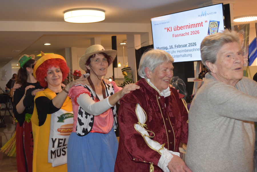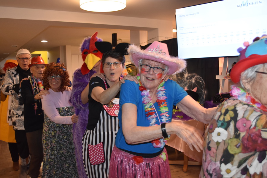 Mit der traditionellen Heimfasnacht für alle Heimbewohnenden, Mieter und Mitarbeitenden gingen auch die närrischen Tage im Marienheim zu Ende. Zur stimmungsvollen Musik von Steven Raphael und der Schnitzelbank- und Gesangseinlage der Bärenzwicker wurde noch einmal so richtig getanzt, geschunkelt, Polonaise gemacht und gelacht. Das Gastronomieteam verwöhnte alle Anwesenden mit feinsten Fasnachtschüechli, Berliner und Schenkeli und so freuen sich alle schon heute auf den 4. Februar 2027 wenn es heisst: "Fasnachtsstart mit dem Schutzigen Donnerstag".