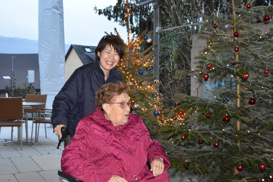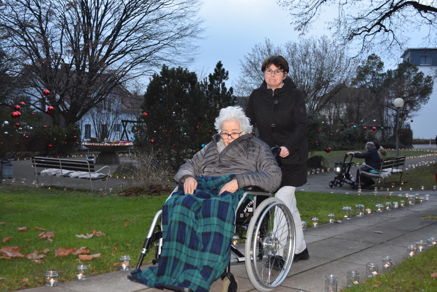 Angefangen hat er aber schon am Vortag. Die Heimbewohnerinnen und Heimbewohner haben an einem Nachmittag alle 1'200.- Kerzengläser vorbereitet. Am 4. Dezember wurden diese dann durch den Stiftungsrat im Park verteilt und pünktlich um 15.30 Uhr angezündet. Im prächtigen Lichtermeer konnten danach die Heimbewohnenden, Angehörige, Gäste und Mitarbeitende einen Spaziergang durch den Park unternehmen und sich bei Glühwein, Punsch und Lebkuchen verpflegen. Ein Highlight war dann der aus Stiftungsrat, Mitarbeitenden und heimbewohnenden zusammengestellte Chor, welcher die bekanntesten Weihnachtslieder zum Besten gab. Ein grosses Dankeschön an das Team der Aktivierung und Alltagsgestaltung sowie der Gastronomie für die Organisation und allen Helfern, welche zu diesem besinnlichen und vorweihnächtlichen Anlass beigetragen haben.