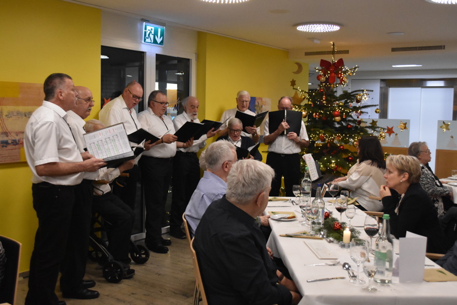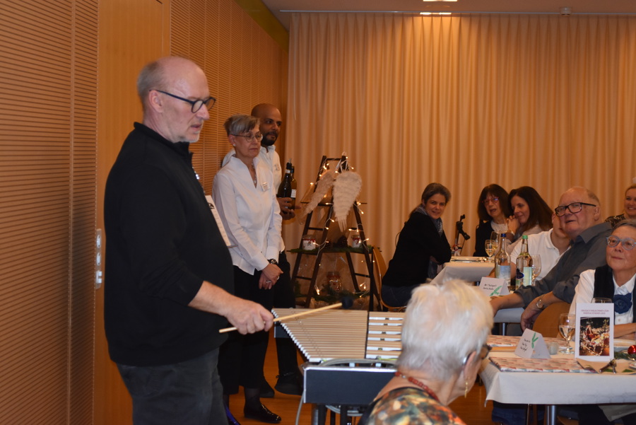 Stiftungsratspräsident Urs Peier und Heimleiter Patrick Schmid durften rund 150 Heimbewohnende, Mieter, Angehörige und Gäste zur traditionellen Weihnachtsfeier begrüssen. Neben den musikalischen Klängen vom Männerchor Wangen und Walter Grob mit dem Vibraphon trugen die beiden Pfarrer Sebastian Muthupara und Erich Huber mit einem Gebet und einer Weihnachtsgeschichte zu einer besinnlichen Atmosphäre bei. Im Anschluss verwöhnte das Gastronomieteam die Gäste mit einem gluschtigen Menü, bevor alle den Abend ausklingen lassen konnten. Ein herzliches Dankeschön allen Beteiligten aus Gastronomie, inkl. unseren Aushilfen sowie der Pflege und dem Team Hauswirtschaft und Technik für ihren super Einsatz.