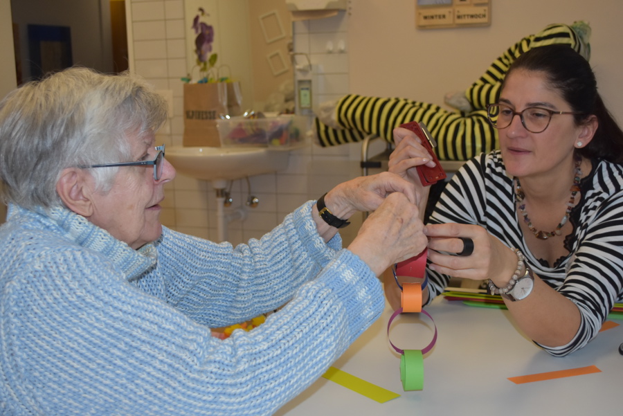Mit genug Zeitvorsprung auf den Schmutzigen Donnerstag beginnt das Team der AT zusammen mit den Heimbewohnenden mit den Vorbereitungen für die Fasnachts-Dekoration. Fleissig werden Bööge gestopft, Riesen-Konfetti ausgeschnitten und Tischdekorationen, passend zum Motto "KI übernimmt" vorbereitet.